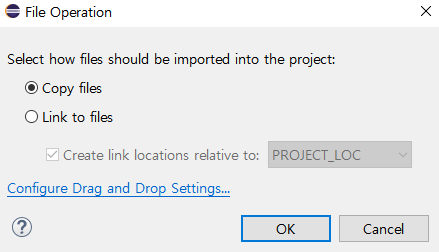 이미 쓰인 프로그램을 프로젝트에 추가하고 싶을 때는 src 폴더에 우리가 추가하고자 하는 Java 파일을 드래그해 주면 된다. 드래그한 후에는 아래와 같은 페이지가 뜬다.