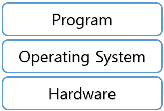 일반적인 프로그램은 운영체제 위에서 프로그램이 실행된다. 하드웨어를 기반으로 운영체제가 동작하고, 해당 운영체제 위에서 프로그램이 실행되는 구조이다. 하지만 자바 프로그램은 아래와 같은 구조로 실행이 된다.