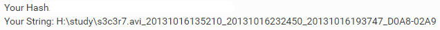 lowercase(md5(H:\study\s3c3r7.avi_20131016135210_20131016232450_20131016193747_D0A8-02A9))
