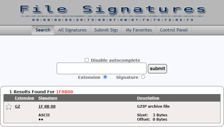 일단 이 파일이 어떤 파일인지 분석하기 위해 HxD를 통해 살펴봤다. 위의 내용이 이 파일의 전부다. pw가 flag.str인 것만 알 수 있다. 헤더만 보고는 어떤 파일인지 알 수 없어서 이 사이트를 이용해서 어떤 파일인지 알아낼 수 있었다.