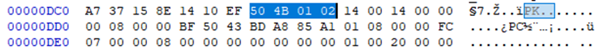 | Central Directory Signature | 50 4B 01 02 (4bytes) |
