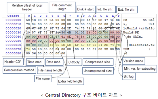 위의 내용을 토대로 Central Directory에 들어갈 내용을 작성했다.