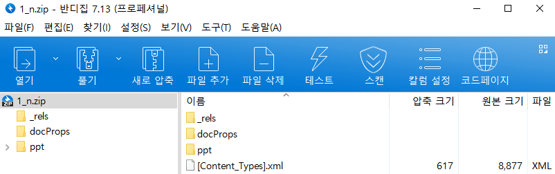 보면 이 파일은 압축 파일의 구조를 가지고 있다는 것을 확인할 수 있다. 따라서 이 파일의 확장명을 zip으로 바꿔주고, 파일을 열면 아래와 같은 폴더들이 보인다.